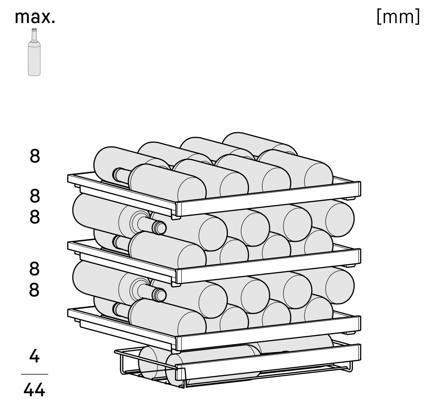 尺寸:寬60 深56.5 高82-88cm 最大儲存瓶數(750cc/瓶):44 運轉使用安培:1.5A 電壓:220V/60Hz .單一箱溫設計 .理想濕度設定 .雙層防紫外線玻璃 .業界最高等級活性炭過濾裝置 進入LIEBHERR全球網頁